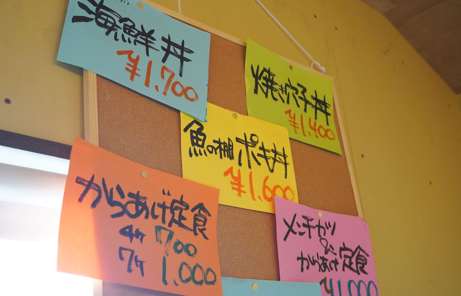 昼は定食と海鮮丼、夜は創作料理とお酒が楽しめるお店です。