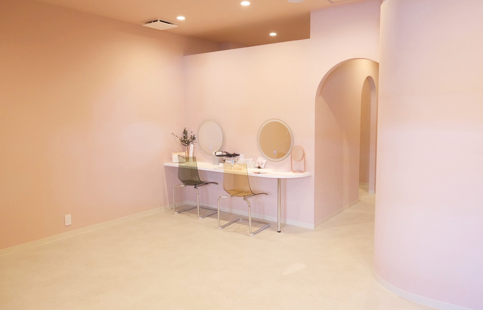 サロン内は優しく柔らかい雰囲気で、個室でゆったり落ち着いた空間。